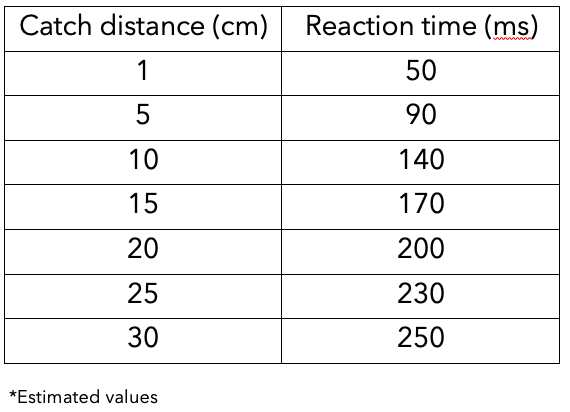 - Person A drops the ruler without warning while person A must catch it as fast as possible