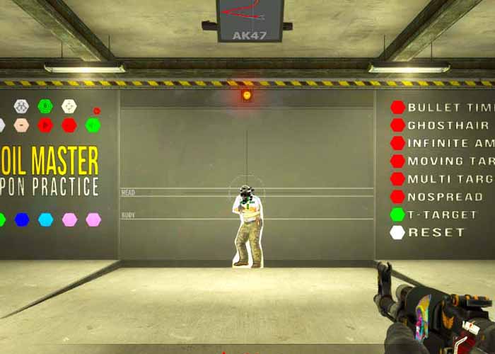 A great way to start with spray practice is to master the first 10-15 bullets. Here infinite ammo will save you time from reloading all the time which makes the practice more smooth and more effective.